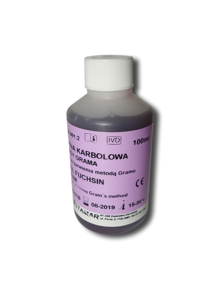 Strona główna / Sklep / Odczynniki chemiczne / Barwniki / Mikrobiologiczne / Fuksyna karbolowa met. Grama 100ml